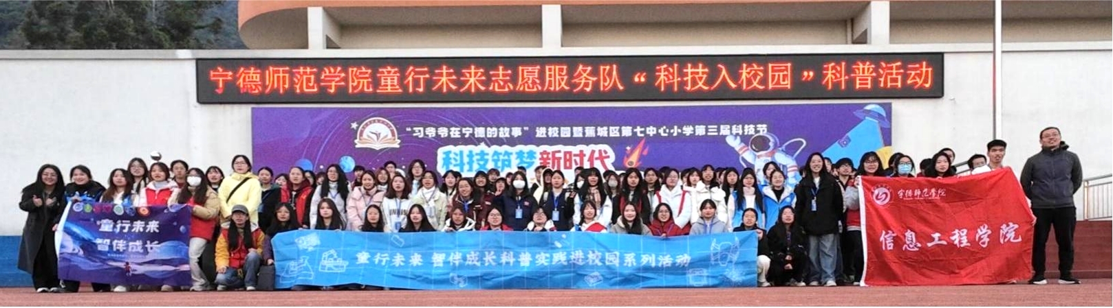 12月26日,宁德师范学院信息工程学院“童行未来,智伴成长”科创志愿服务队赴蕉城区第七中心小学开展科普实践活动。此次活动由杨烈君老师组织协调,特邀“闽江科学传播学者”王宁教授参与指导,与“童行未来,智伴成长”科创志愿服务队一起,为现场3000余名小学生带来了一场精彩纷呈的科技启蒙之旅。